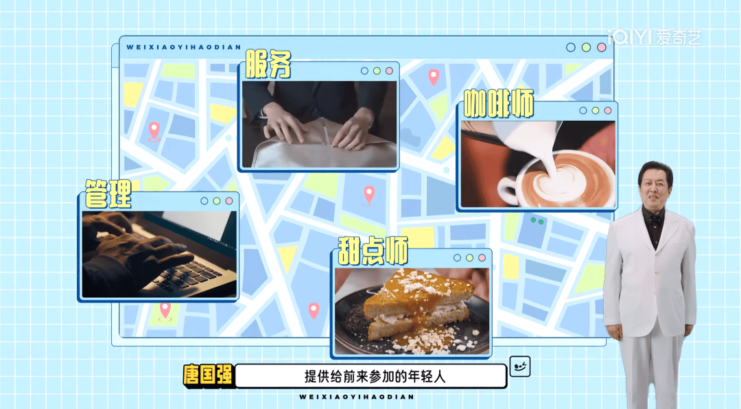 节目组把开咖啡店拆解成4个技能,咖啡师、烘焙甜点师、服务人员和运营管理。